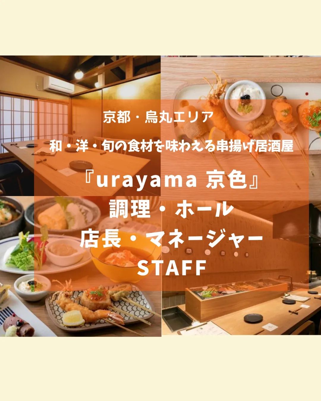 四条寺町にて14年間営業した京色本店は屋号も新たに【urayama 京色】として、四条烏丸の地でメニューも新たにリニューアルオープン!ライブ感溢れるカウンター席と、2階にはプライベート感のある個室で旬の串揚げを楽しめます!期間限定のリーズナブルなコースもあり★