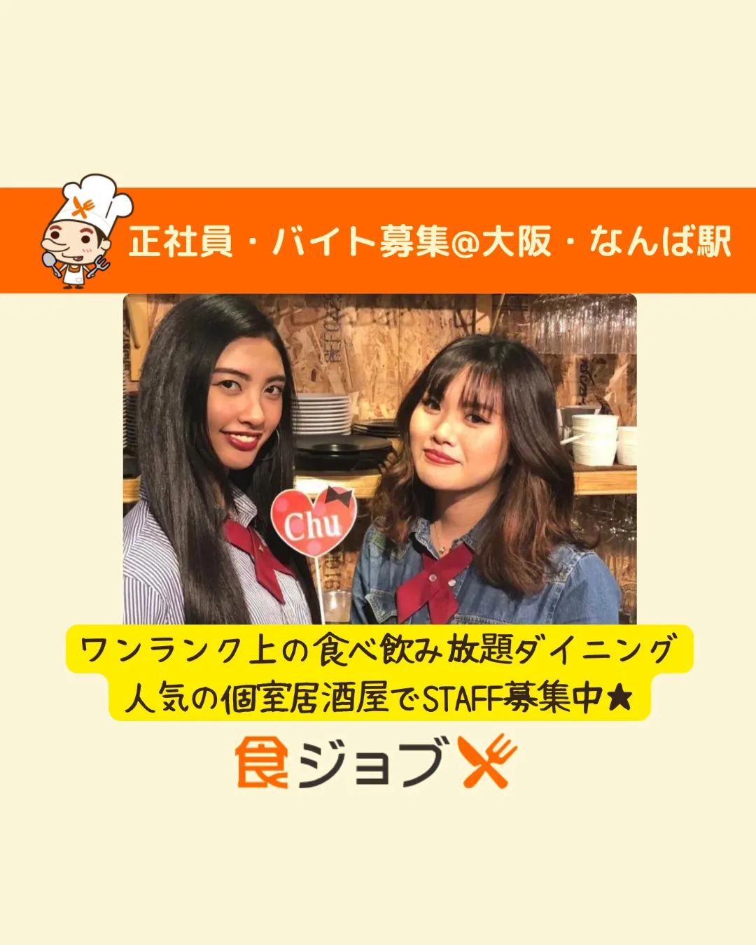 【大阪・ミナミ】なんば駅すぐ!ワンランク上の食べ飲み放題ダイニング個室居酒屋でSTAFF募集中★(正)月給27万円〜&昇給・賞与あり(ア)高時給1,100円〜!まかない付き◎髪型・髪色・ネイルなどオシ...続きを読む