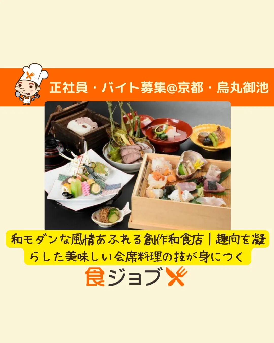 【京都・烏丸御池】「日本料理の真髄を」和モダンな風情あふれる創作和食店!(ア)短時間&土日バイトOK!柔軟にシフトが組める (正)充実の休暇制度や福利厚生で働きやすい!若手スタッフが活躍!女性人気の高...続きを読む