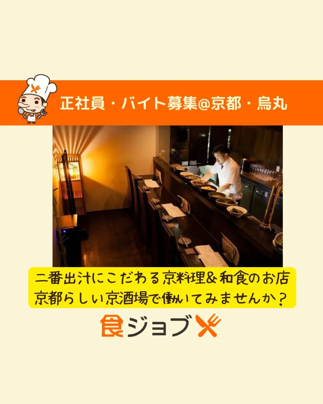 【京都・烏丸】一番だしより旨味と香りが濃い二番出汁を使用!季節を感じる京料理を気軽に味わえる居酒屋♪日本酒が充実しているので、日本酒好きにもオススメ!短期&短時間OK◎15時〜の勤務スタートで午前中は...続きを読む