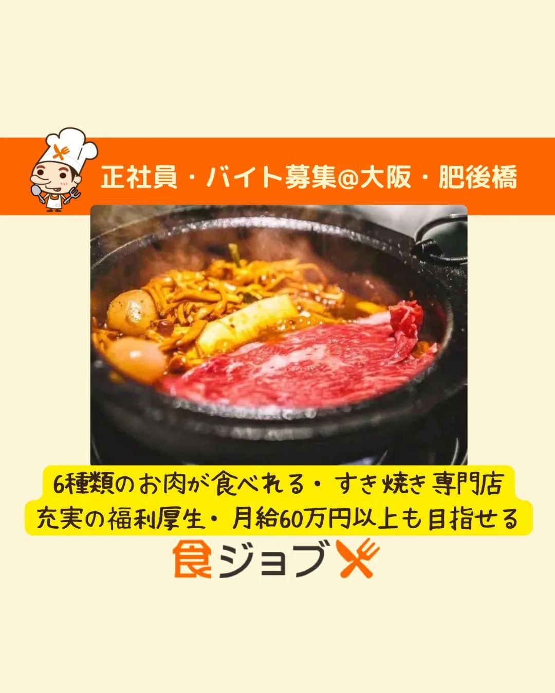 【大阪・江戸堀】「”SUKIYAKI”を大阪 江戸堀から世界へ」がコンセプトの完全紹介制の、すき焼き専門の日本料理店!未経験もOK!経験者優遇・長期休暇ありなど働く方に寄り添っ...続きを読む