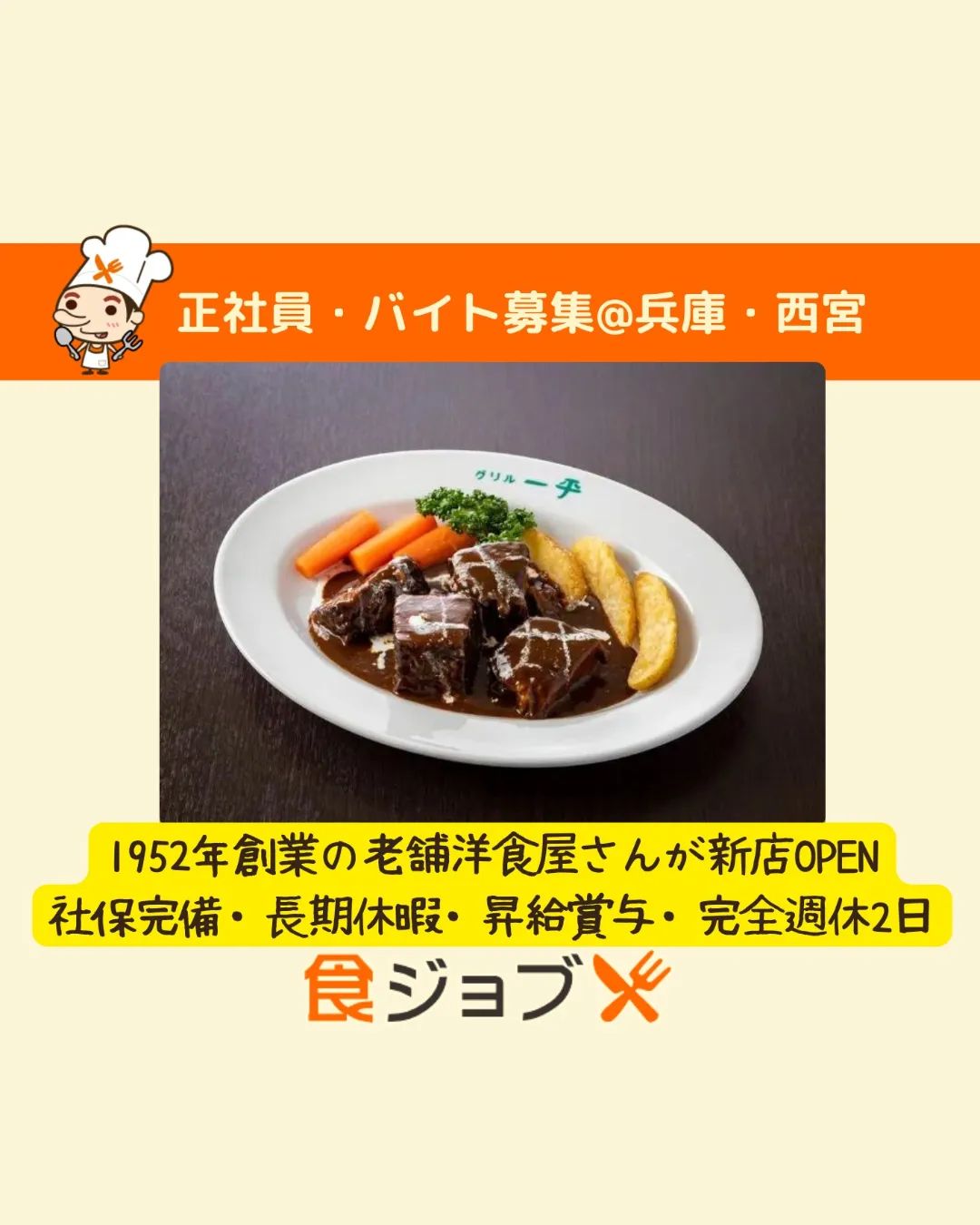 【兵庫・西宮】創業70年・神戸洋食の老舗!今在家町に2022年11月OPEN!オープニングスタッフを募集中(正社員・アルバイトスタッフ)♪ 4代にわたって受け継いできた秘伝のレシピ。特製ソースのビーフ...続きを読む