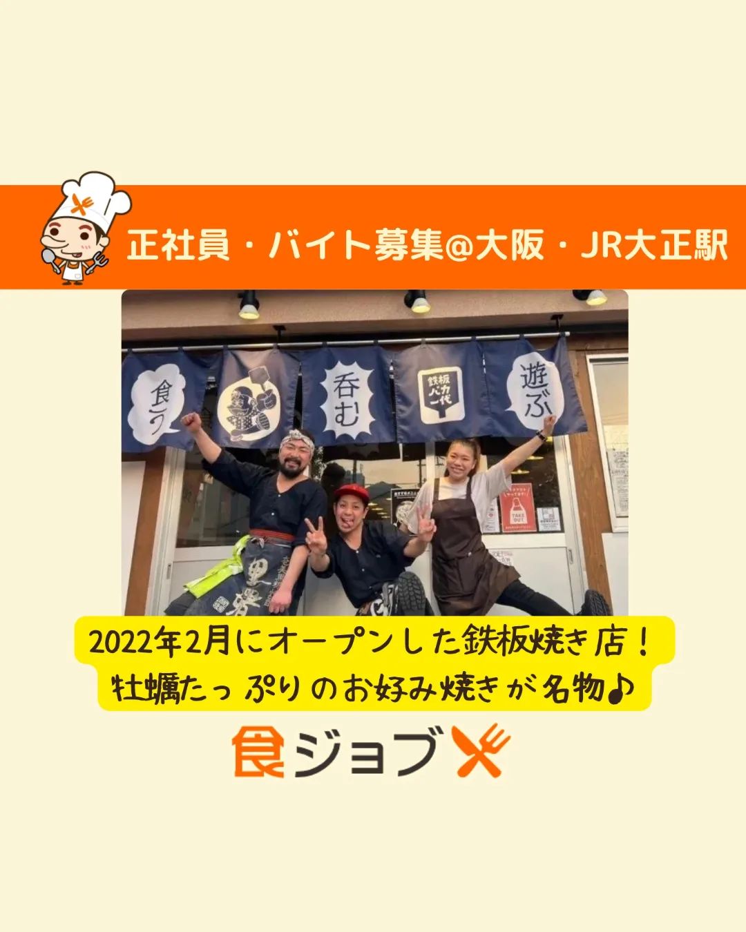 【大阪・大正】2022年2月オープン!鉄板焼き店◆目標実現のために挑戦したい人材を募集中! (ア)時給 1,000円~1,200円(正)月収22万円〜!週3日~生活リズムに合わせてシフト調整◎ アルバ...続きを読む