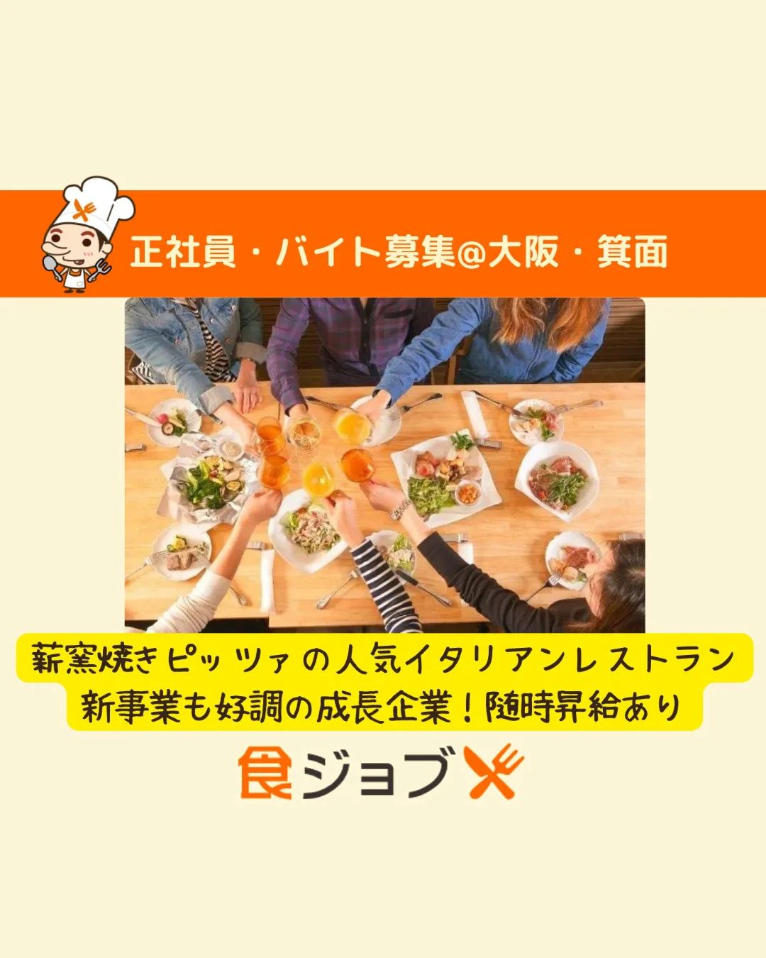 大阪・箕面|桜井駅から3分! 本格薪窯焼きピッツァが楽しめるレストランをはじめ5つの事業を展開する成長企業! 実力アップに応じてスピード昇給もOK!福利厚生充実&完全週休2日♪ 事業企画や運営に携わり...続きを読む