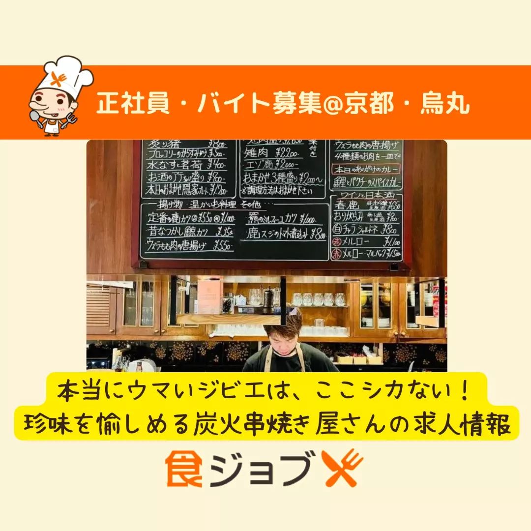 【京都・烏丸のジビエ料理店】鹿肉の欧風カレーや、猪・鴨・鹿・キジ・ウサギなどを使った逸品など、珍しいジビエを扱うお店! 正社員・アルバイト&店長候補・料理長候補募集◎長期休暇・役職手当/未経験OK・柔...続きを読む