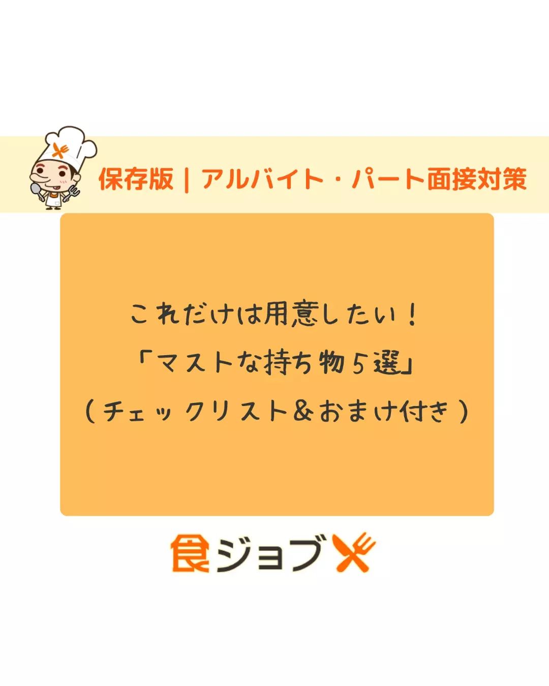 「バイト・パート面接で なにを持っていけばいいの?」 マストアイテム5選と 採用される可能性があるなら 持っていきたい物3選 をまとめました! <バイト・パート面接でマストな持ち物5選> □履歴書 □...続きを読む