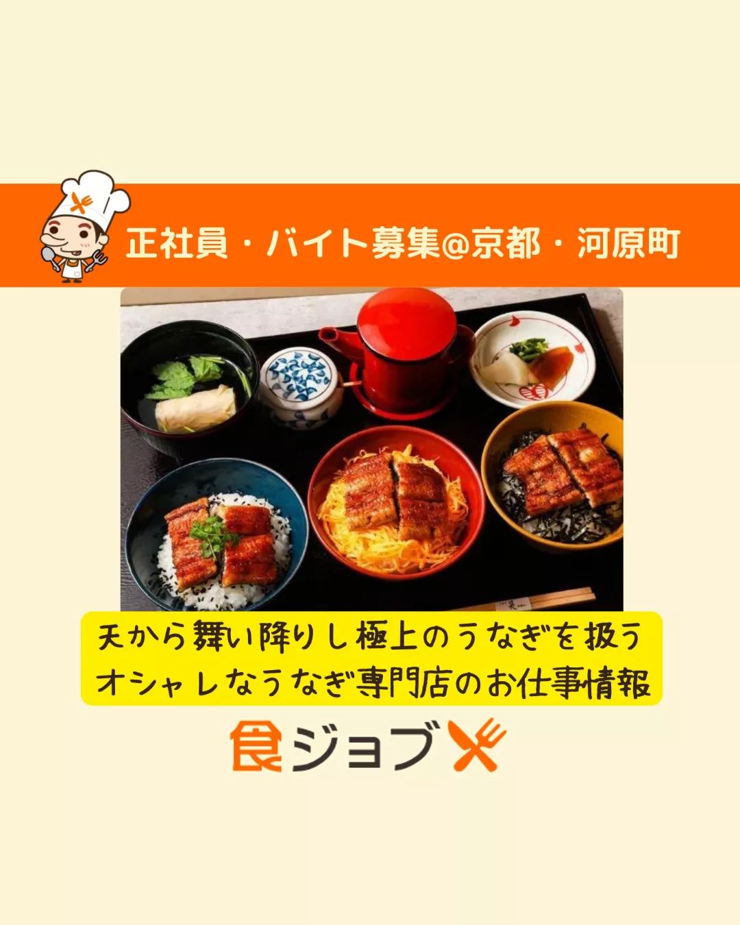 【京都の人気うなぎ屋】河原町から5分!日本唯一のブランドうなぎを扱うお店のホールスタッフ募集★ アルバイトは短時間・平日のみ・土日祝のみOK!正社員は福利厚生充実♪ 月給22万〜35万&昇給・賞与あり...続きを読む